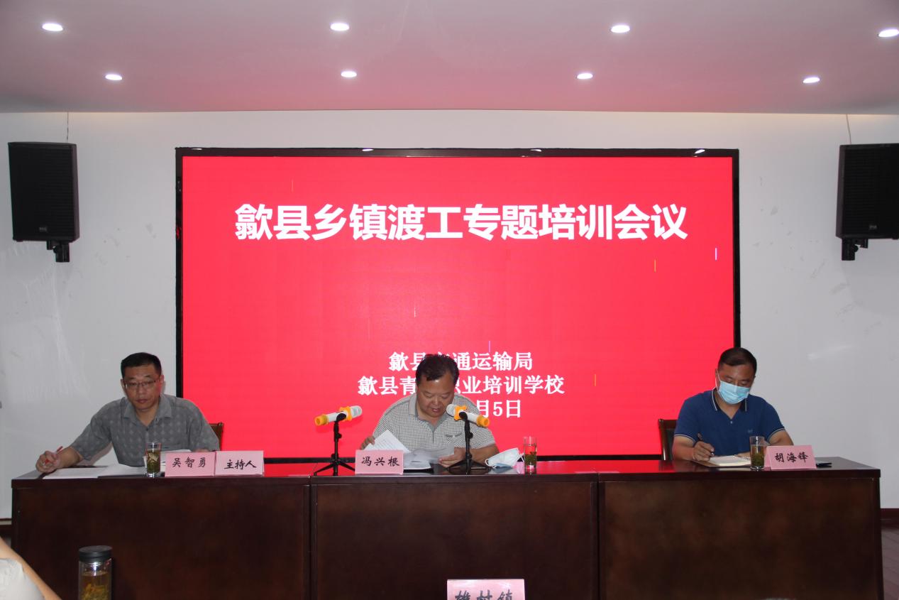 2021年8月5日,由歙縣交通運(yùn)輸局主辦,歙縣青創(chuàng)職業(yè)培訓(xùn)學(xué)校承辦的“歙縣鄉(xiāng)鎮(zhèn)渡工專題培訓(xùn)會(huì)議”在我中心順利舉辦。縣內(nèi)小川、坑口、新溪口、王村、徽城、雄村、武陽(yáng)、深渡等8個(gè)鄉(xiāng)鎮(zhèn)政府分管領(lǐng)導(dǎo)及在鄉(xiāng)的17名渡工培訓(xùn)對(duì)象參加培訓(xùn)。歙縣交通運(yùn)輸局副局長(zhǎng)馮興根到會(huì)并作重要講話,青創(chuàng)學(xué)校負(fù)責(zé)人胡海鋒參加會(huì)議。