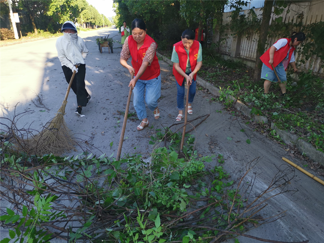 夏日炎炎,地面溫度接近40℃,但全體黨員熱情高漲,支部書記胡海鋒一馬當(dāng)先、率先垂范,對兩側(cè)的雜亂植物進(jìn)行清理;其他黨員也毫不示弱,利用各種工具參與其中,汗如雨下,順著臉頰酣暢流淌,浸濕前胸后背,但大家都毫不在意。經(jīng)過2個(gè)小時(shí)的緊張奮戰(zhàn),使園區(qū)這一路段由“雜草叢生”變成“眼前一亮”,大道更加寬敞、整潔。
