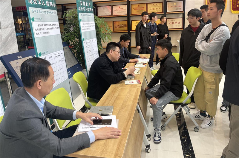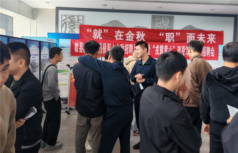 最后,組織參訓(xùn)學(xué)員參加由歙縣退役軍事務(wù)局與江蘇太倉市退役軍人事務(wù)局聯(lián)合舉辦的“榮耀黃山”退役軍人專場招聘會,實(shí)現(xiàn)退役軍人與兩地企業(yè)工作人員面對面溝通,了解市場用人需求,助力退役軍人做好精準(zhǔn)擇業(yè)和順利就業(yè)。